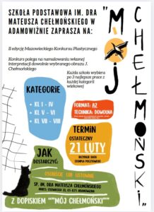 Przypominamy o konkursie Mój Chełmoński oraz informujemy o wydłużeniu czasu na składanie prac zgodnie z informacją na plakacie.